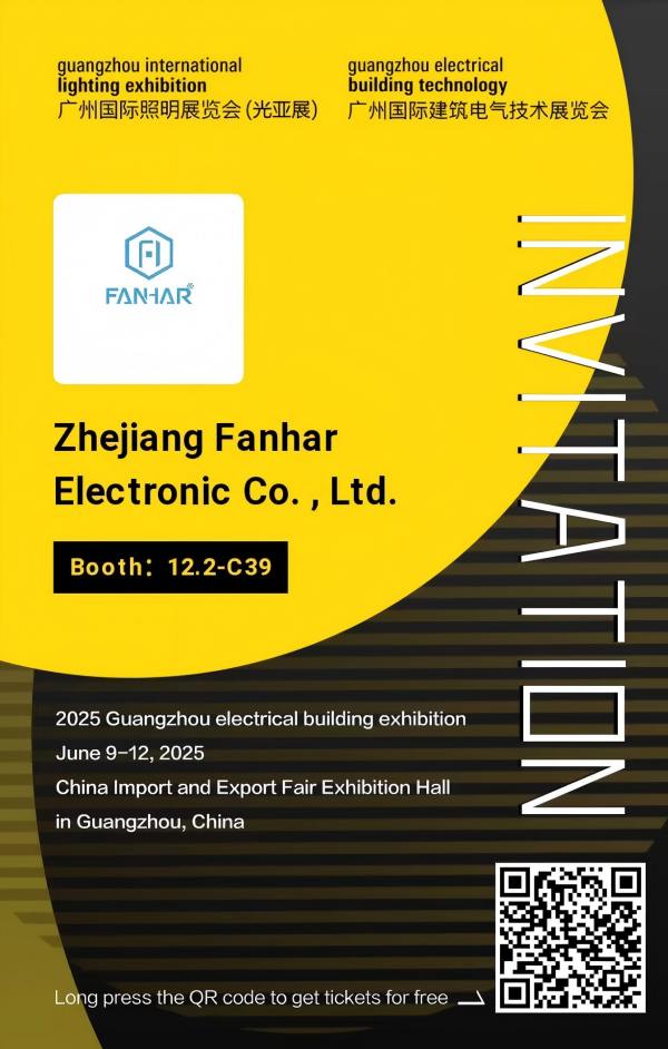 Zhejiang Fanhar Electronics Co., Ltd. is going to participate in the 2025 Guangzhou International Lighting Exhibition, Guangzhou Electrical Building Technology, which will be held in China Import and Export Fair Complex, Guangzhou, China, from 9 to 12 June, 2025. The exhibition will showcase cutting-edge technologies and innovative products in the fields of low-carbon intelligent buildings and intelligent power supply and distribution, whole-house intelligence and hotel intelligence.