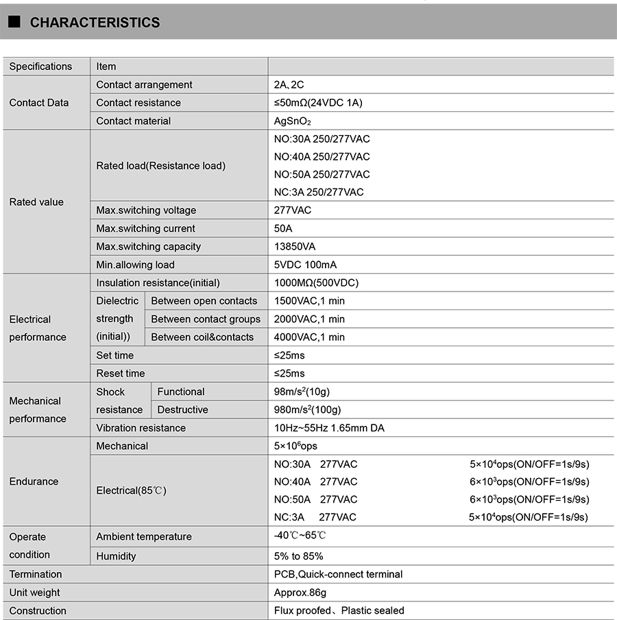 ●Breakdown voltage (between contacts and coil): 4KV,Creep age distance :8mm