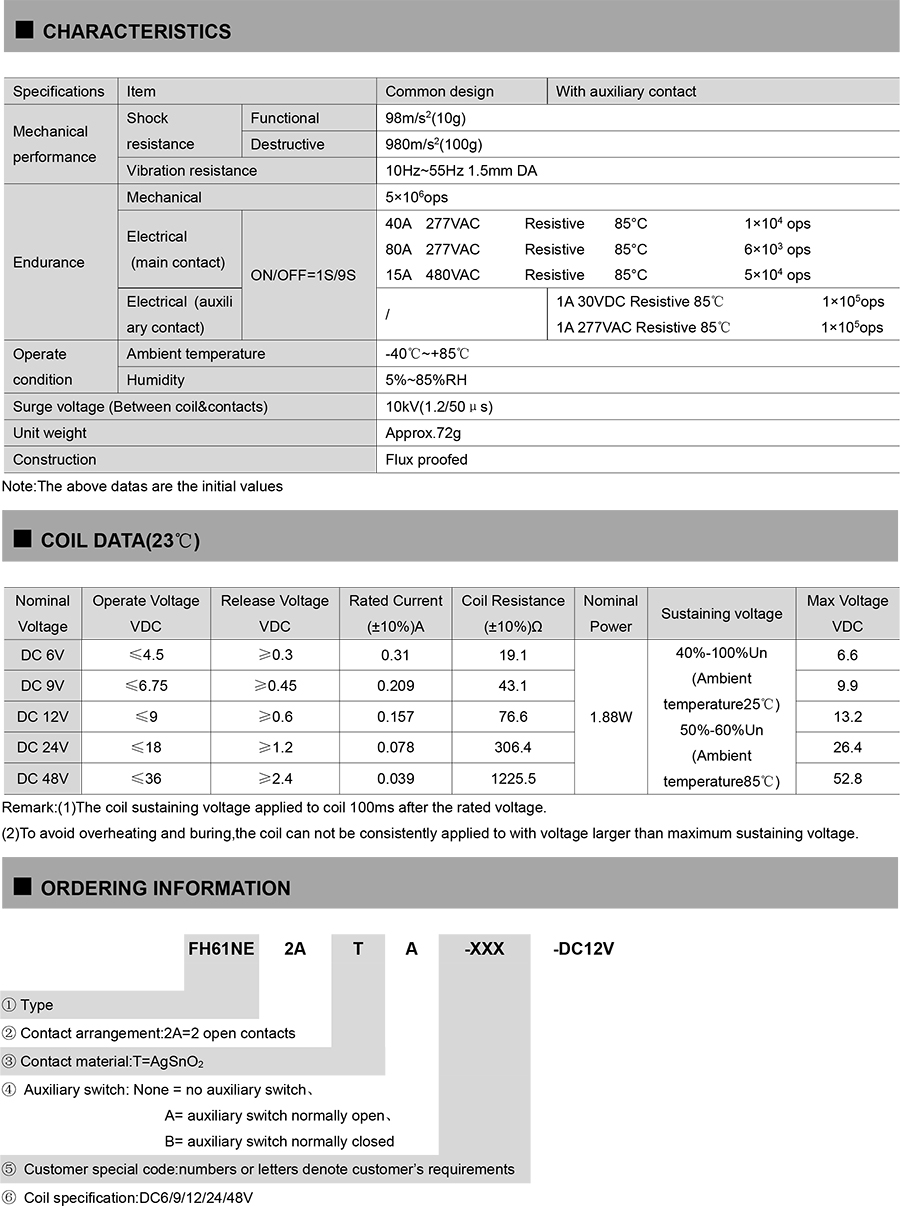 ● Contact gap :3.6mm(main contact) 1.0mm(auxiliary contact) Auxiliary contact:Min0.5mm(When the main contact sticks)