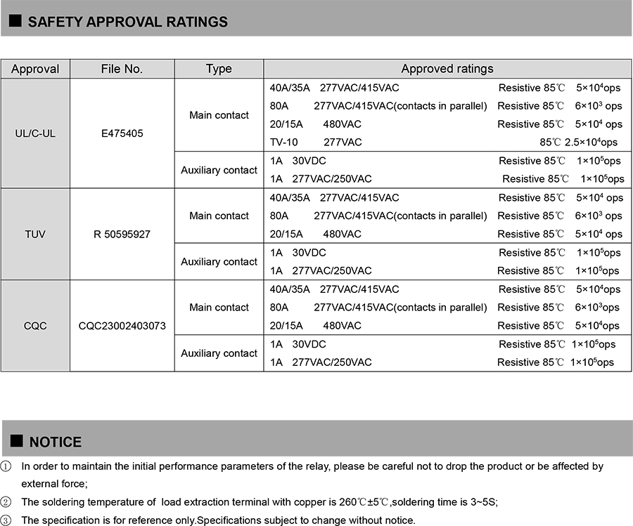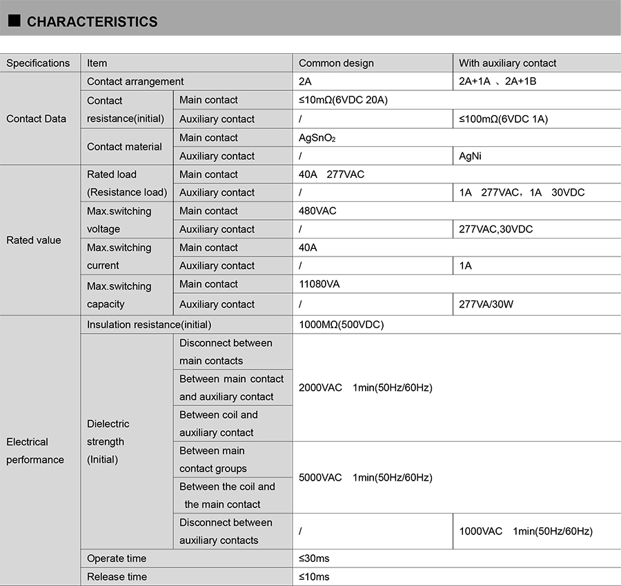 ● 2 sets of 40A main contact+1 set of auxiliary contact