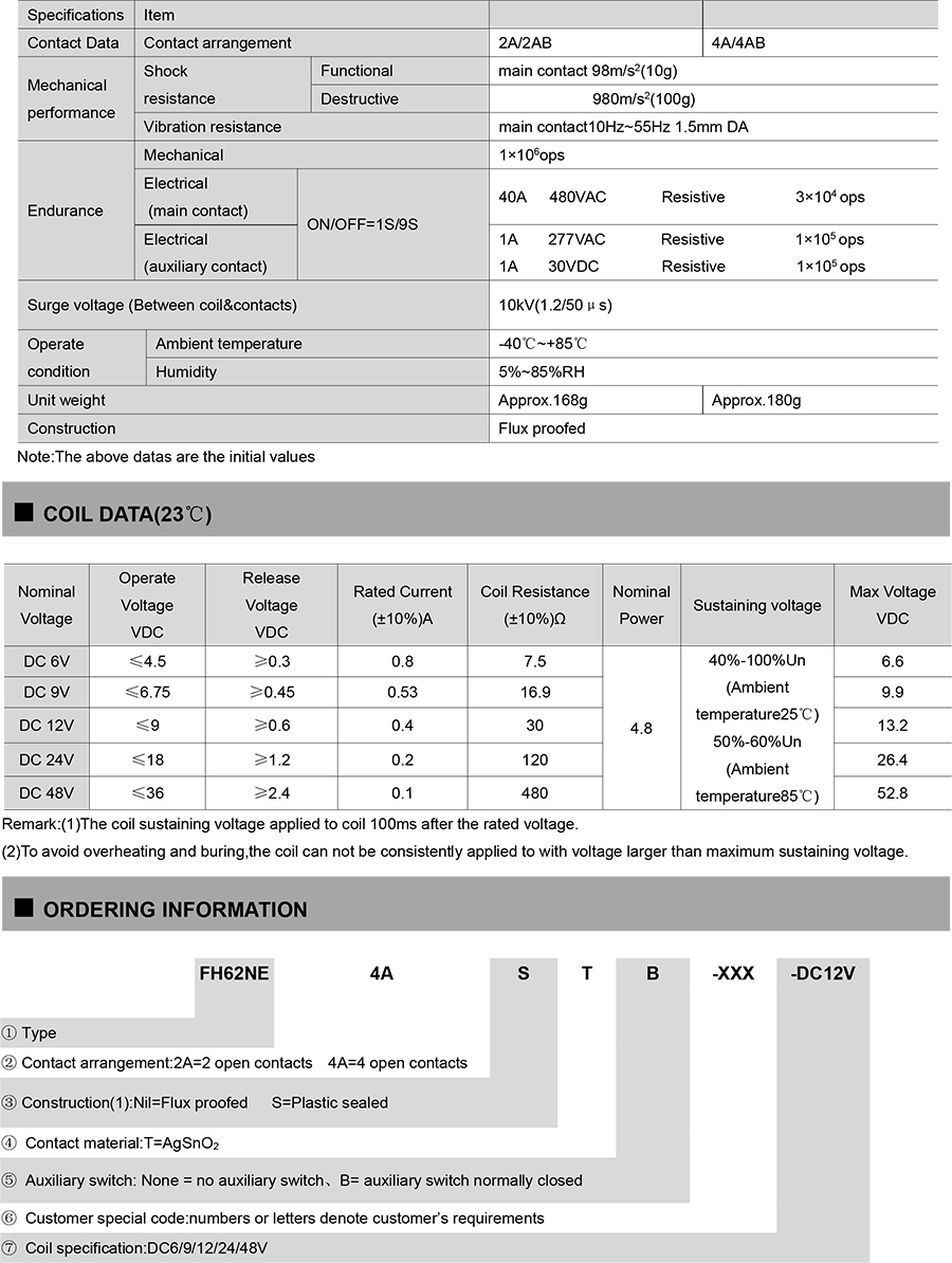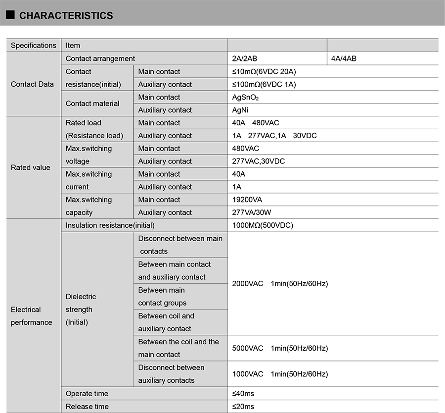 ● 4 sets of 40A main contacts+1 set of auxiliary contact