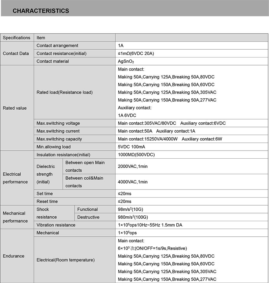 ●Optional contact gap >2.0mm