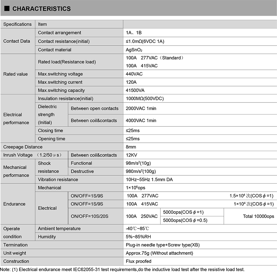 ● 100A switching capability