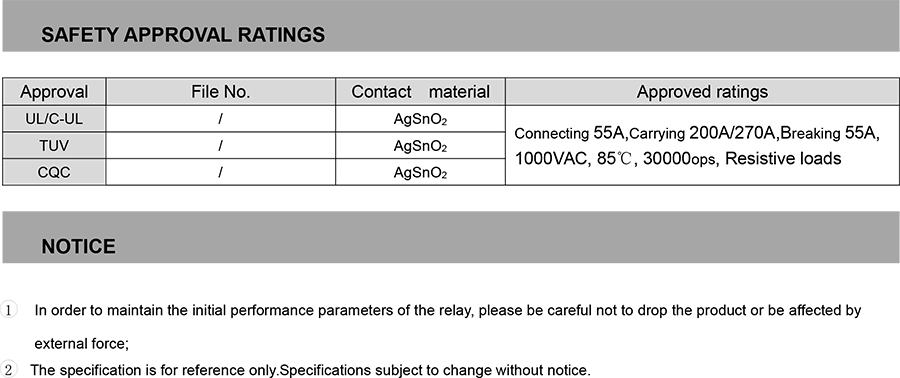 ● One set of double-break with normally open type,Contact gap≥4.0mm