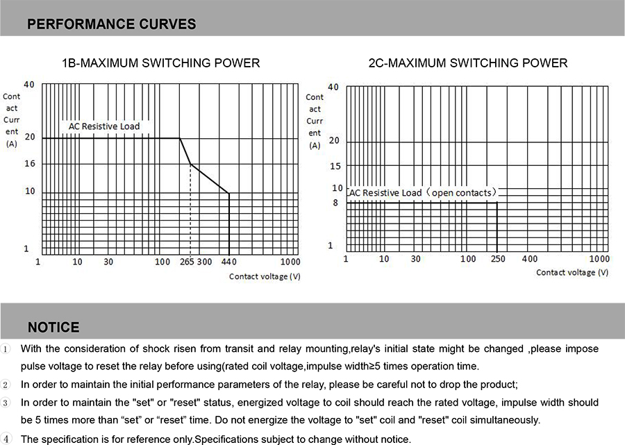 ● 1 sets of 20A switching capability,2 sets of 10A switching capability