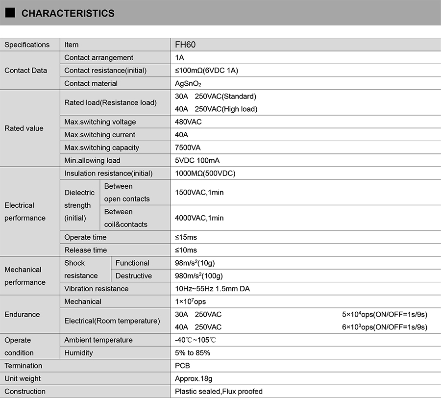 ● Clearance/Creepage(between coil and contacts):>6.4mm