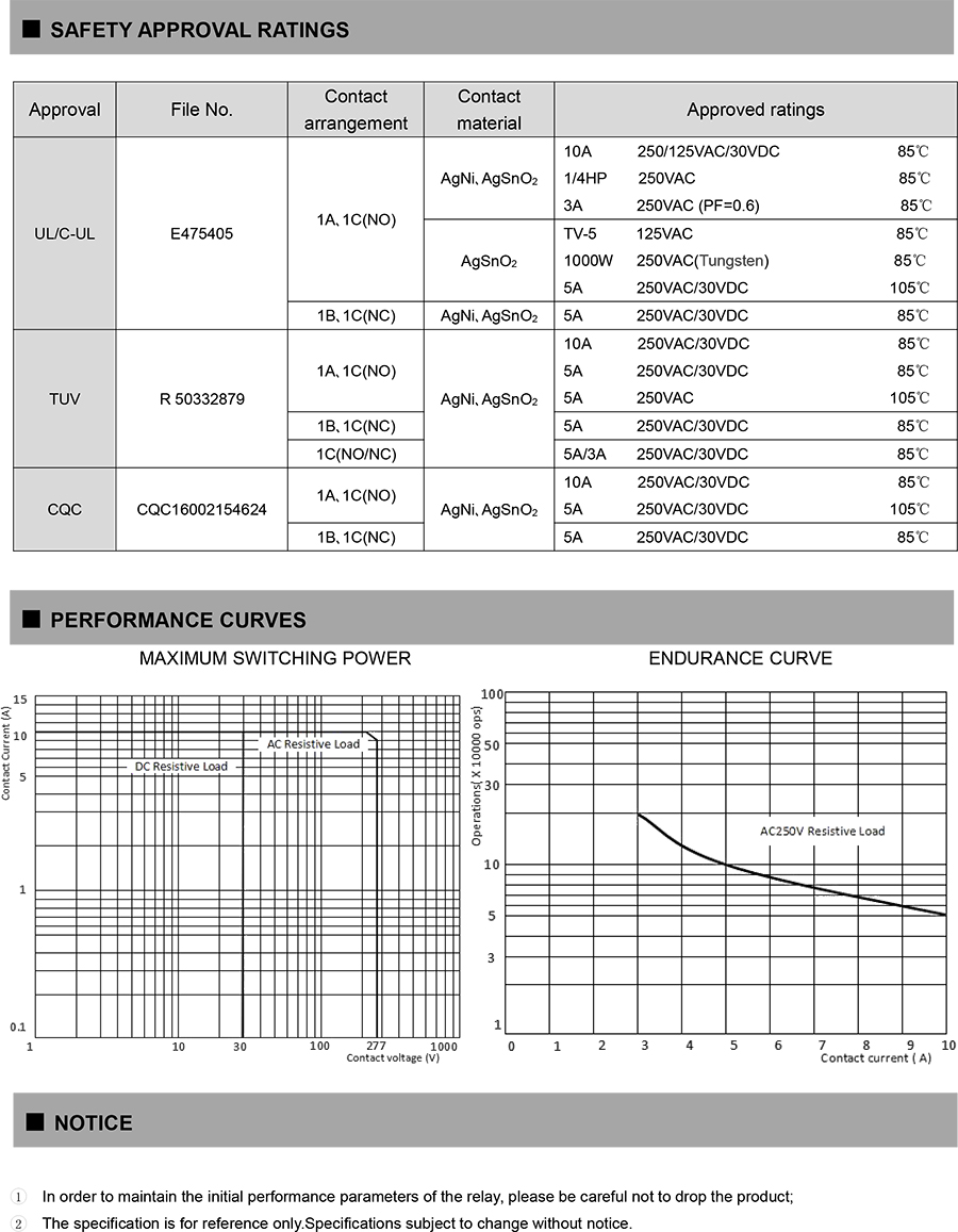 ● Breakdown voltage (between coil and contacts):5KV