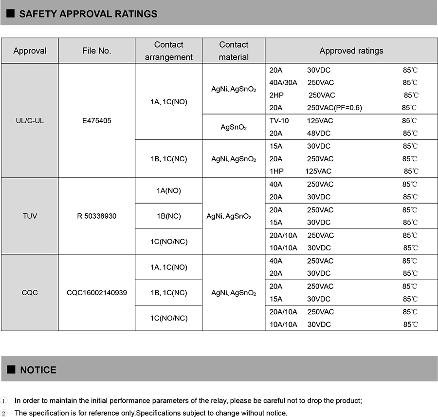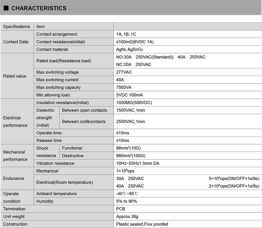 ●Breakdown voltage (between coil and contacts): 2.5KV