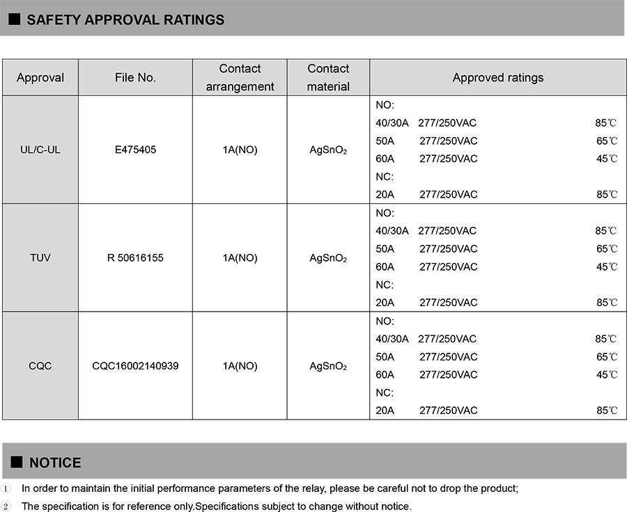 ●50A contact switching capability