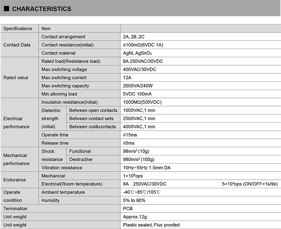 ● Breakdown voltage(between contact groups and contacts):2.5KV
