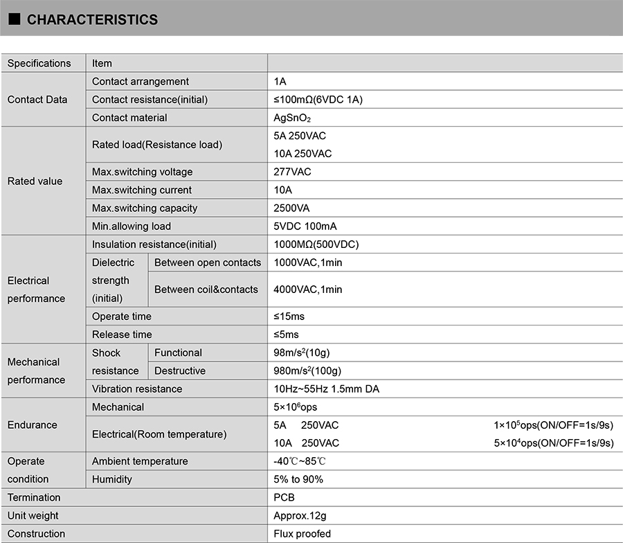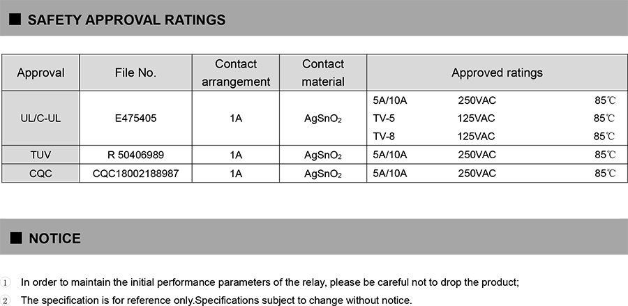 ●Normally open type is UL certificated by TV-5 125VAC,78A inrush current