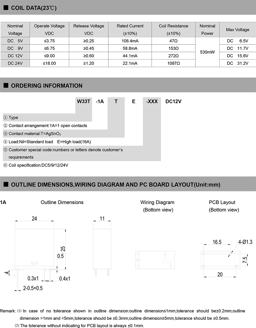 ● Contact arrangement:1A