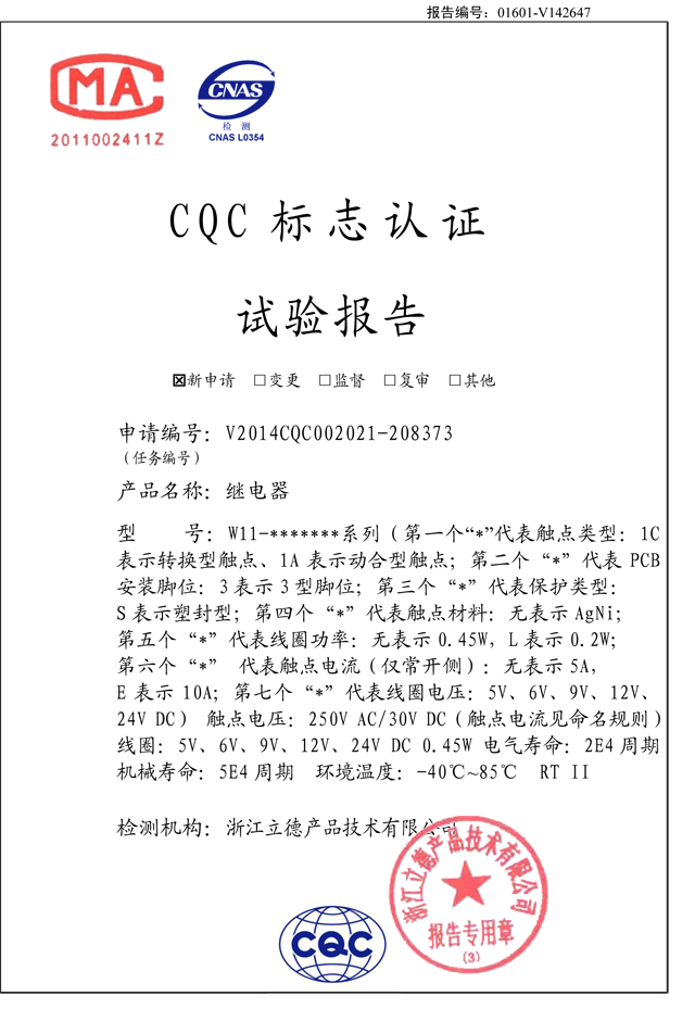 熱烈祝賀公司產(chǎn)品W11電磁繼電器獲得通過CQC產(chǎn)品認(rèn)證。