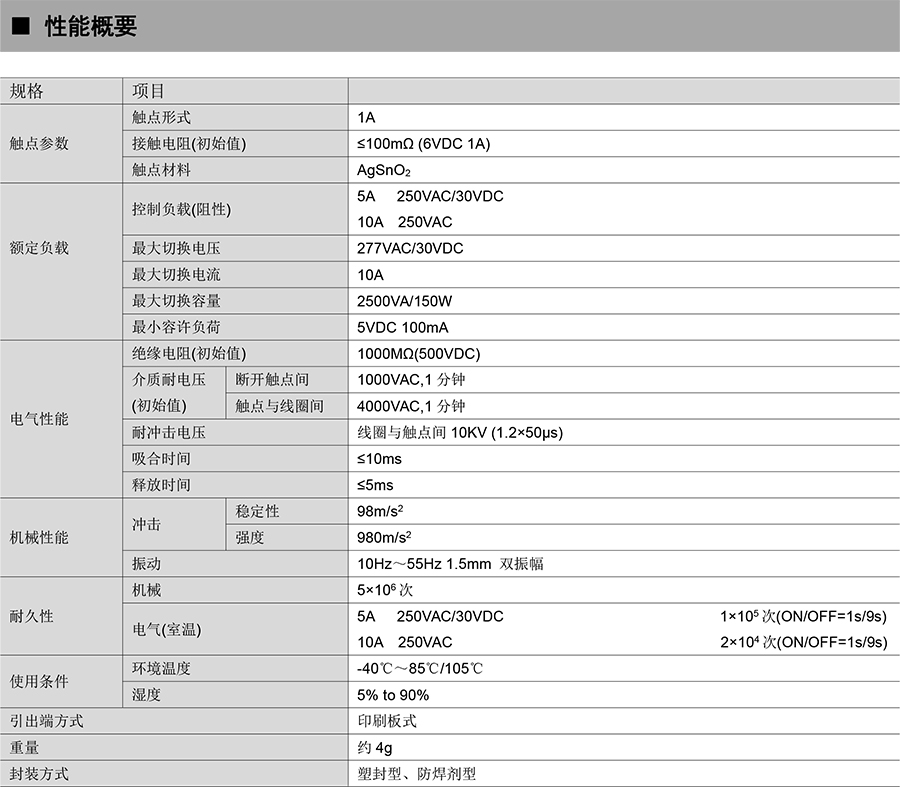 ● 10A 觸點(diǎn)切換能力