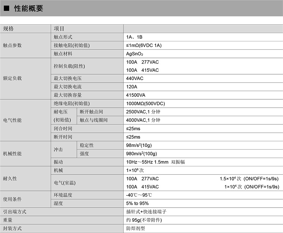 ● 120A 觸點切換能力
