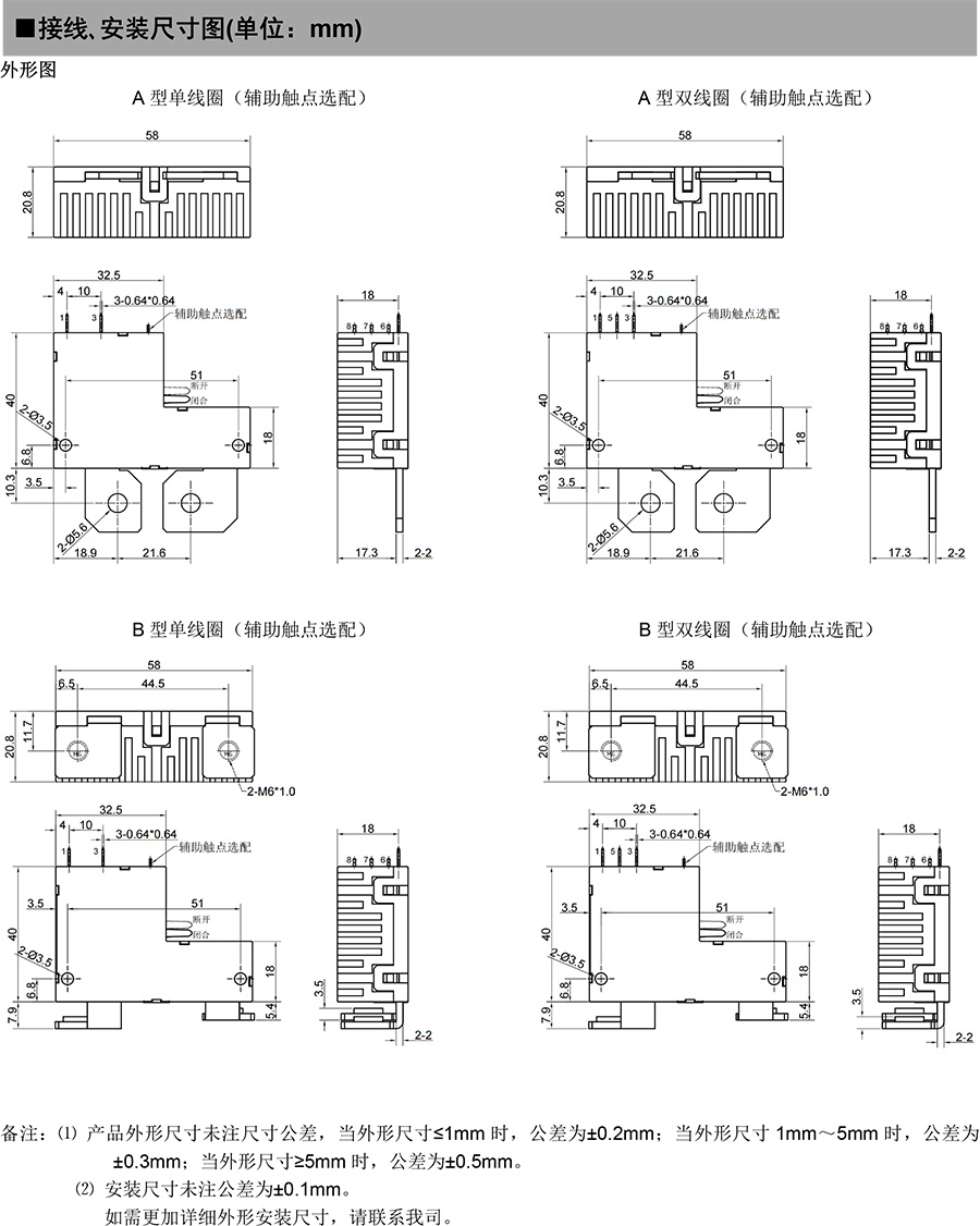 ● 線圈控制單、雙線圈可選