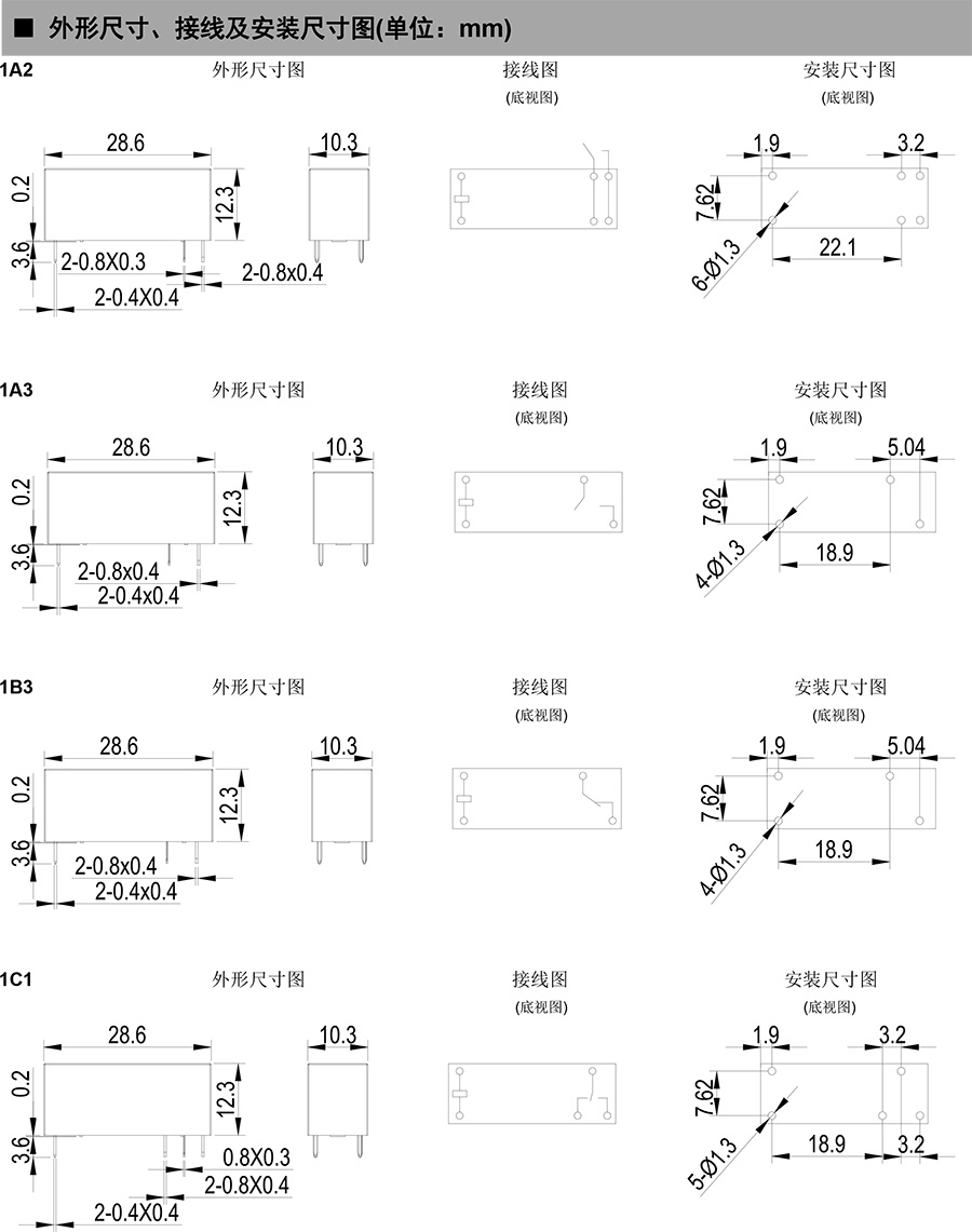 ● 外形尺寸:(28.6×10.3×12.3)mm