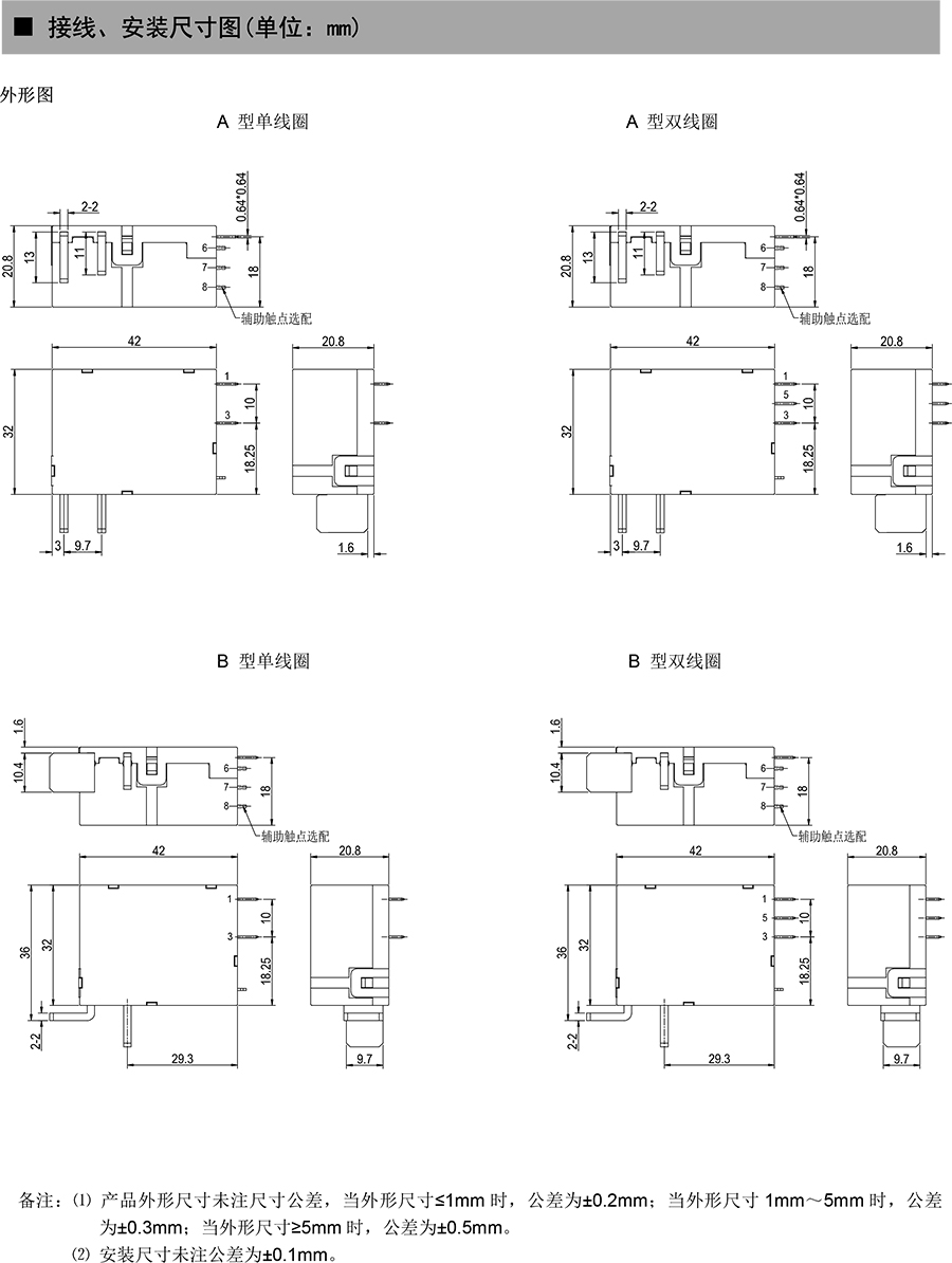 ● 外形尺寸:(42.0×32.0×20.8)mm