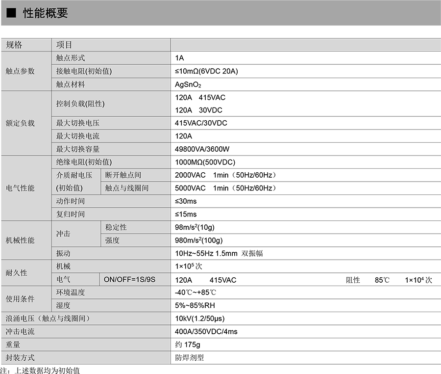 ● 120A 觸點切換能力