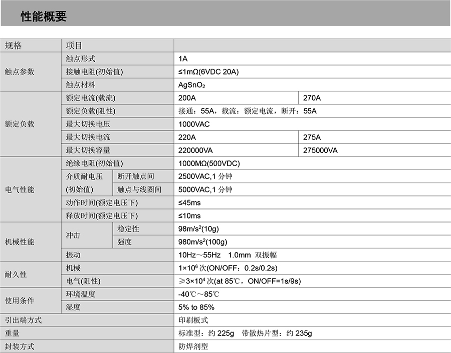 ● 200A/270A 觸點(diǎn)切換能力