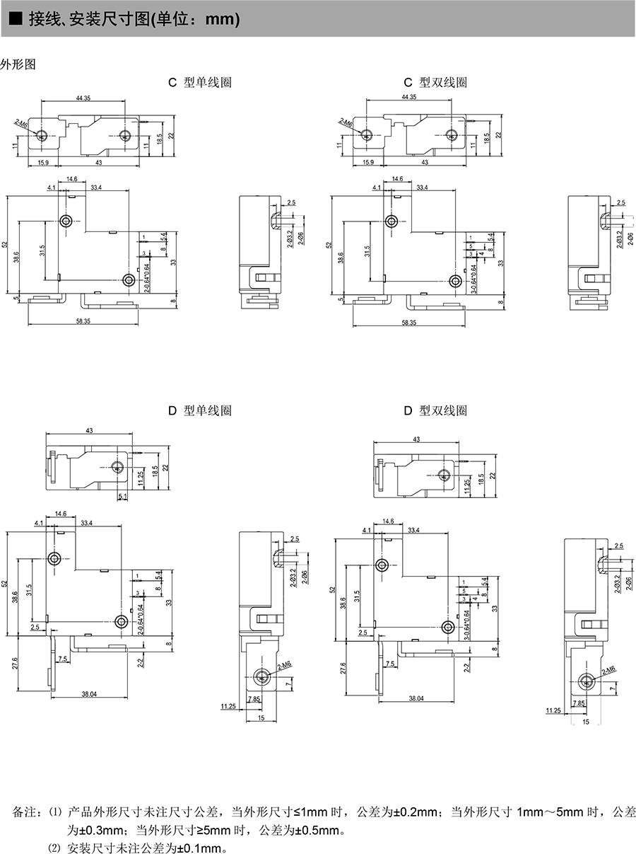 ● 外形尺寸:(52.0×43.0×22.0)mm