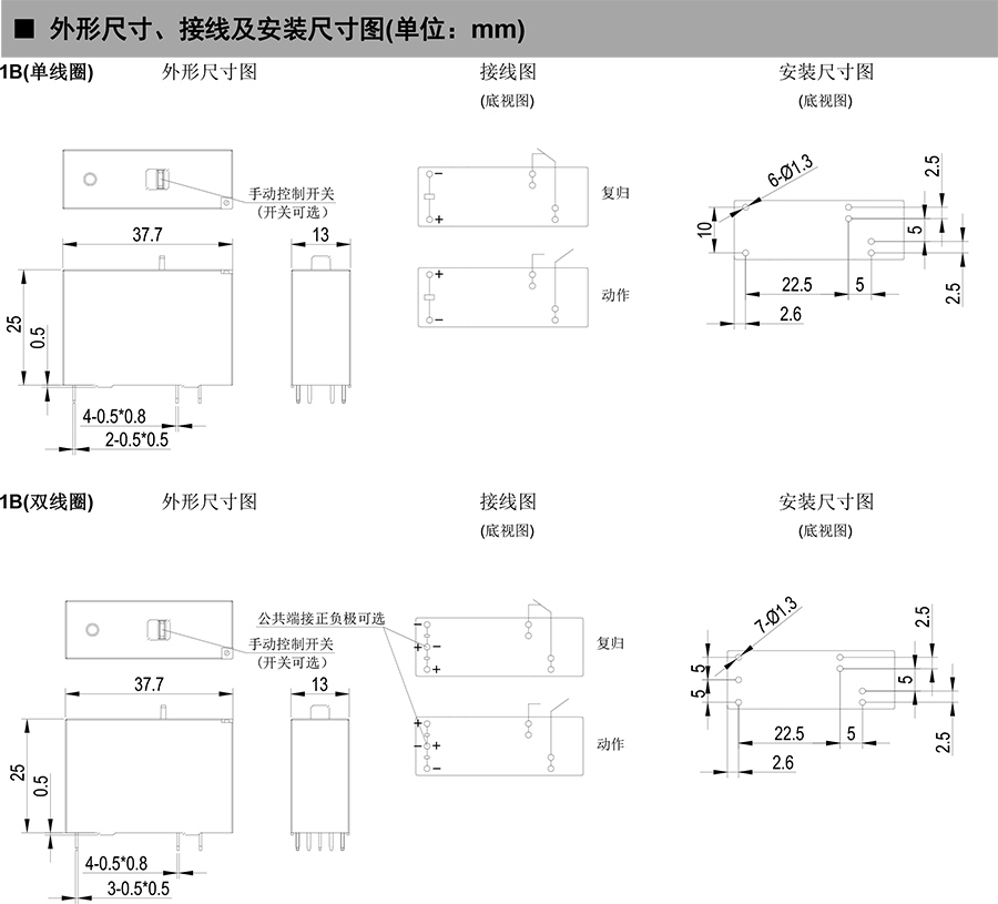 ● 外形尺寸:(37.7×13×25)mm
