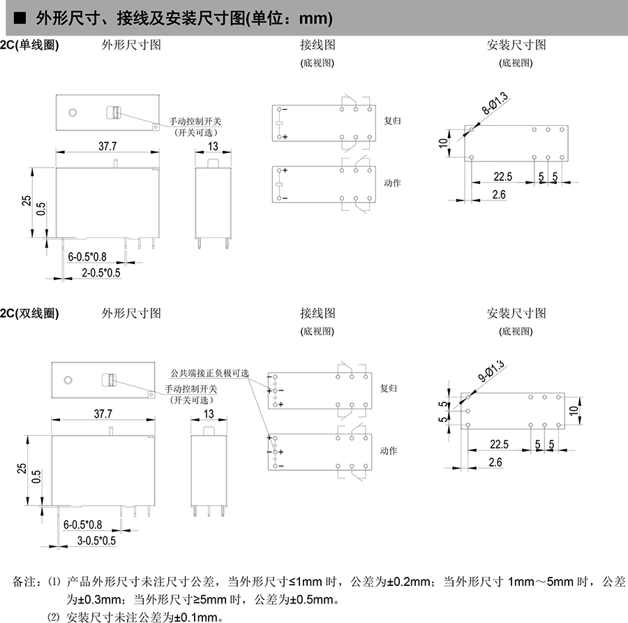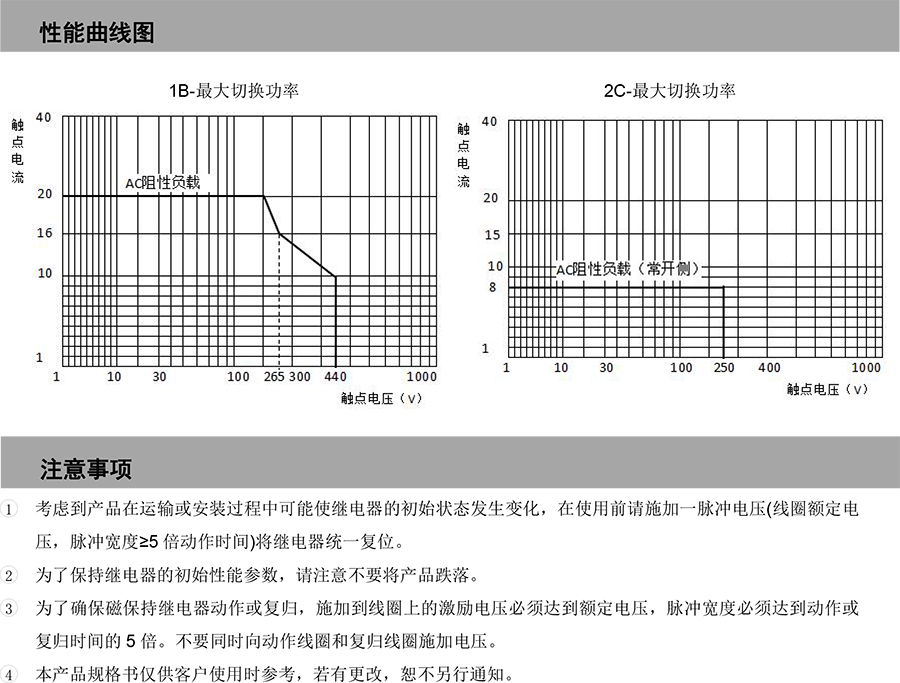 ● 1 組 20A 觸點(diǎn)切換能力,2 組 10A 觸點(diǎn)切換能力