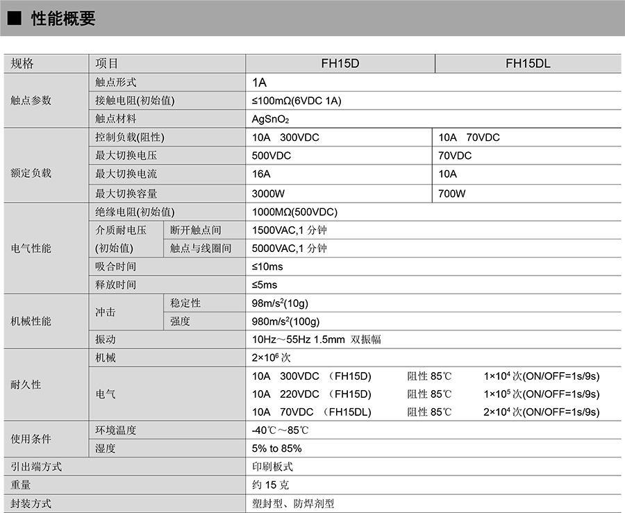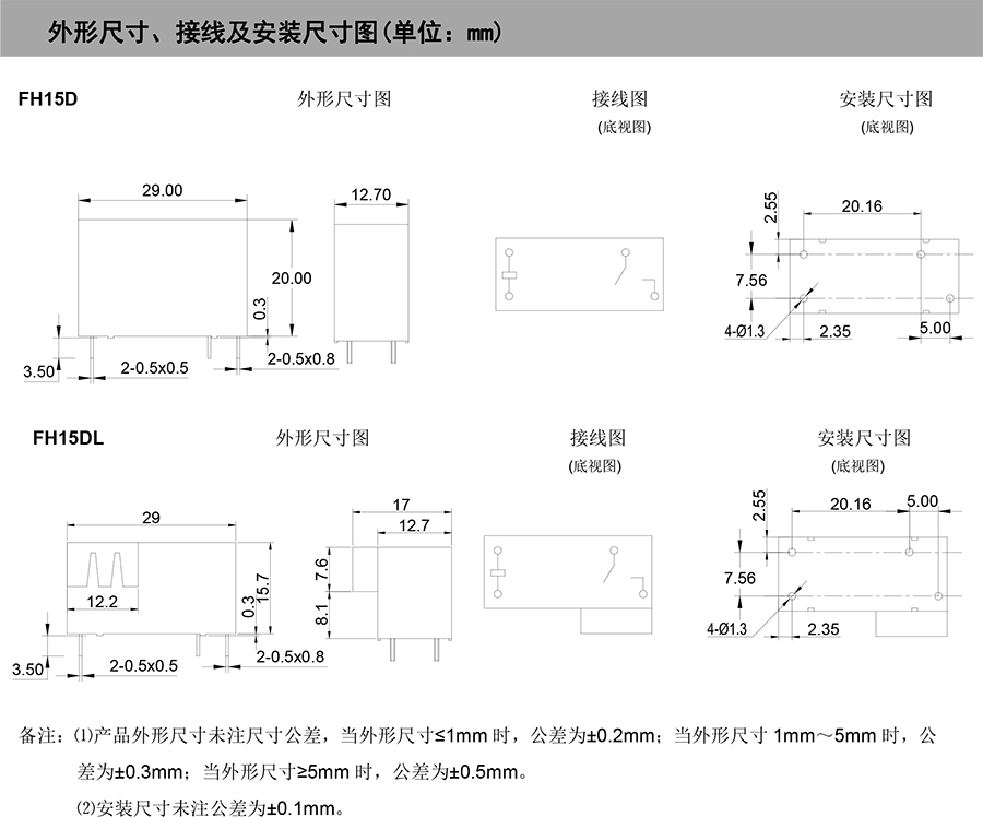 ● 外形尺寸:FH15D(29×12.7×20)mm / FH15DL(29×17×15.7)mm