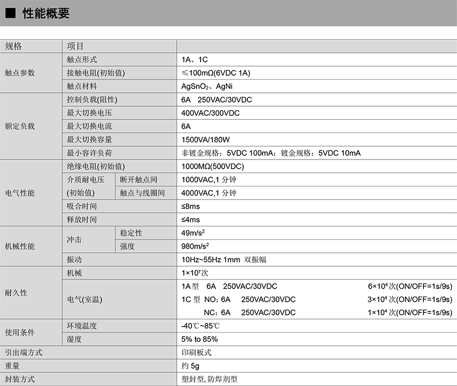 ● 線圈與觸點(diǎn)間抗浪涌電壓 6kV