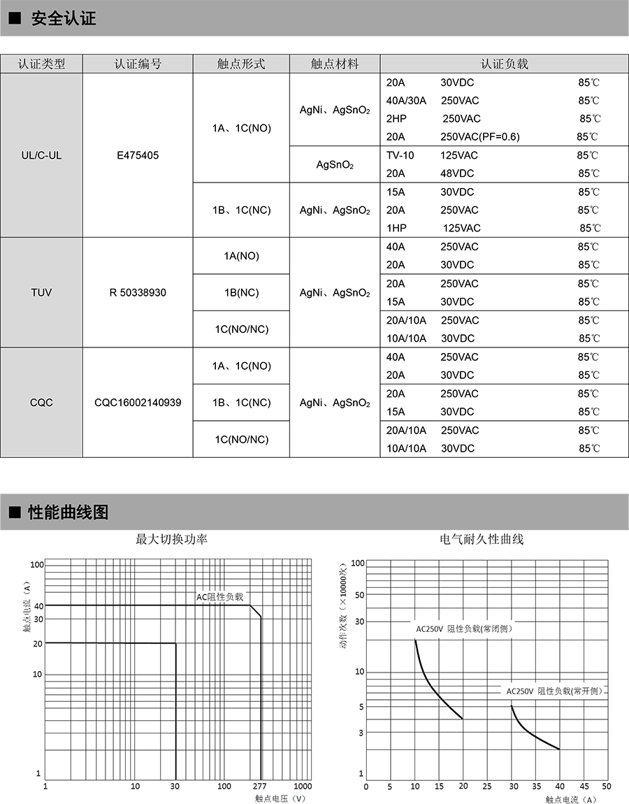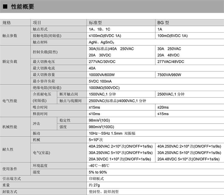 ●40A 觸點切換能力