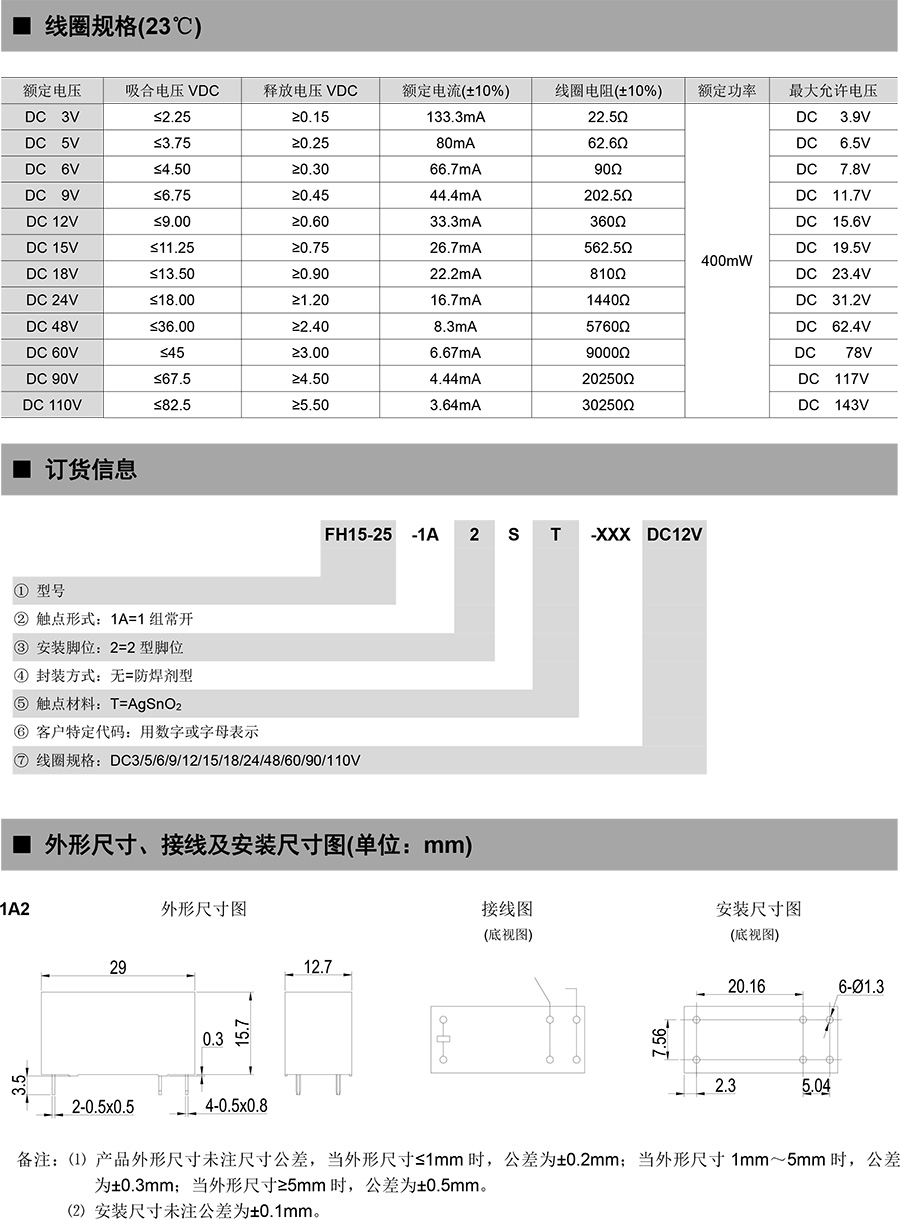 ● 外形尺寸:(29.0×12.7×15.7)mm