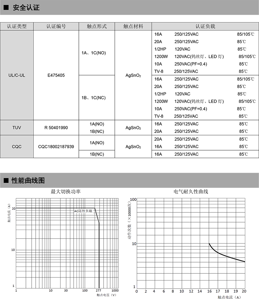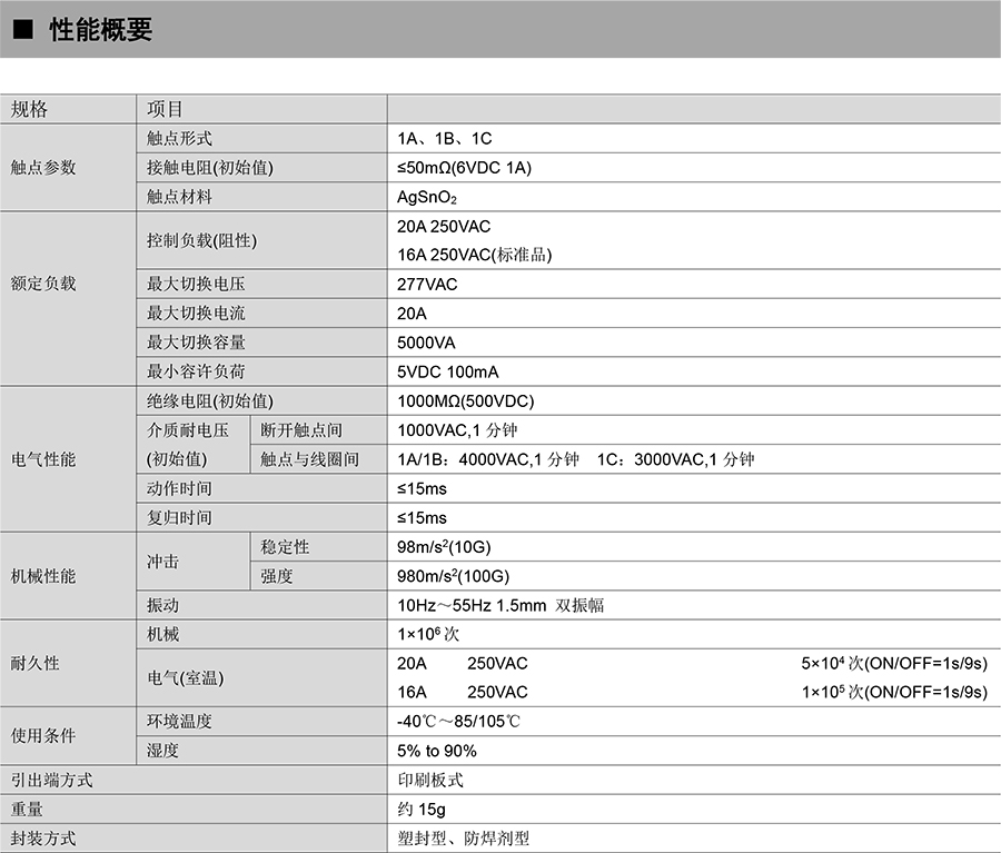 ● 20A 觸點(diǎn)切換能力